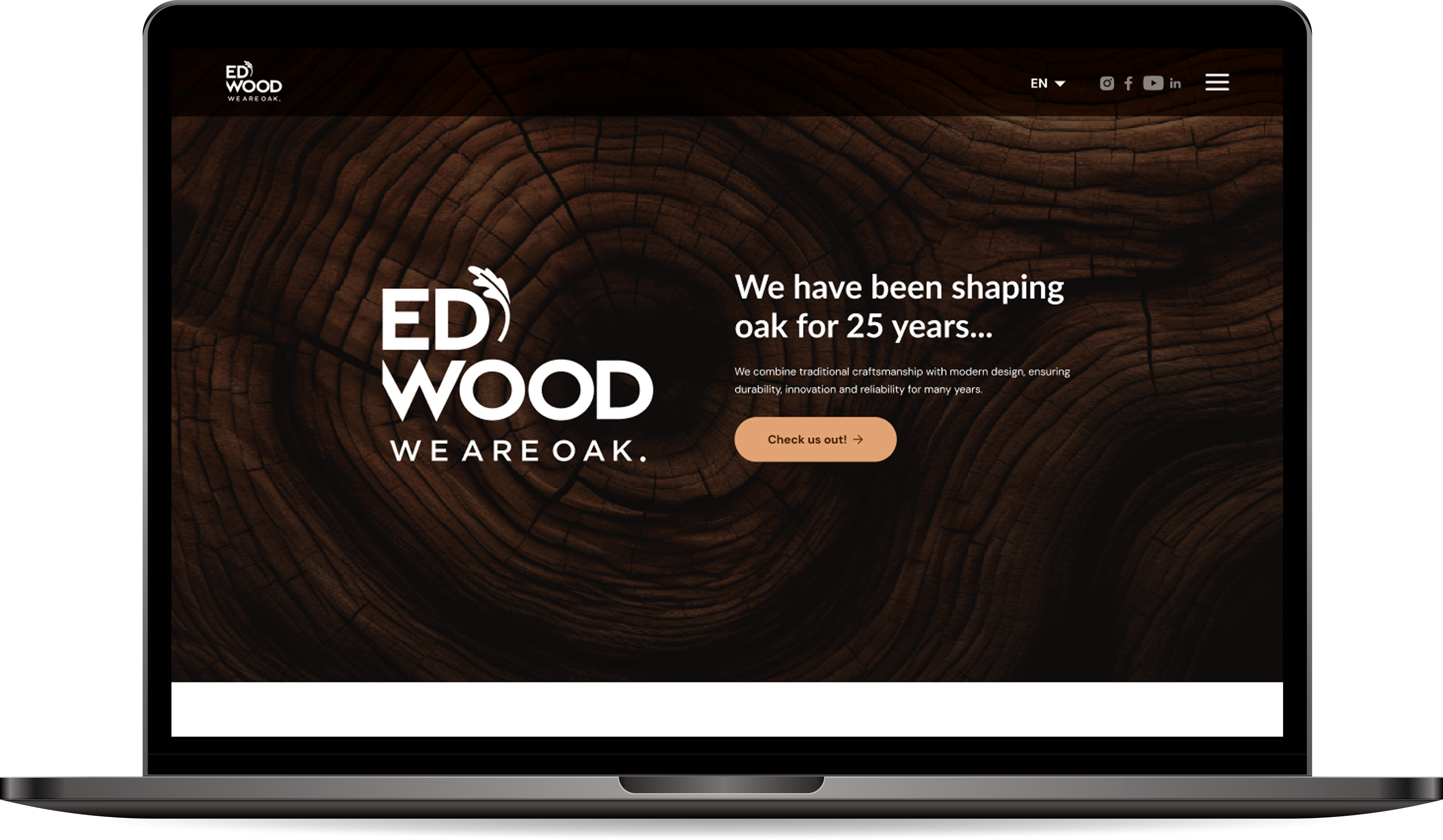 Edwood zyskał nowoczesną, wielojęzyczną stronę internetową, która wzmacnia profesjonalny wizerunek marki i ułatwia komunikację z klientami na rynkach zagranicznych. Nowa platforma podkreśla jakość rzemiosła i wspiera rozwój sprzedaży, prezentując ofertę firmy w eleganckiej, cyfrowej formie.