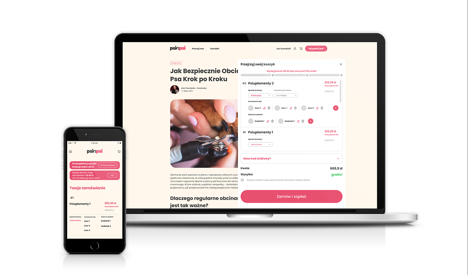 Psiapsi zyskało skuteczny kanał sprzedaży oparty na intuicyjnym systemie personalizacji suplementów. Stworzony przez nas e-commerce ułatwia opiekunom wybór produktów i wzmacnia relację marki z klientami.